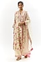Featuring an ivory kurta in cotton silk base with floral print and embroidery. It is paired with linen satin palazzo pants and a net dupatta. Accentuate it with statement jewellery and heels for festive occasions.