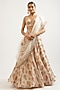Featuring an ivory lehenga in cotton silk base with floral print, hand and machine embroidery. It is paired with a blouse and a net dupatta. Accentuate it with minimal jewellery and heels for a wedding, sangeet or engagement ceremony.