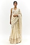 Ivory Georgette Floral Hand Embroidered Saree Set