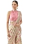 Featuring an ivory pre-pleated sharara saree in georgette and cotton silk base with sequins and mirror embroidery. It is paired with a halter-neck blouse. Accentuate it with silver jewellery and embellished heels for a festive occasion or sangeet ceremony.