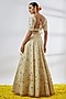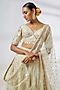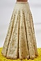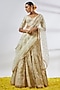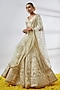 Gopi Vaid presents an ivory lehenga in organza base with sequins detail and embroidery. It is paired with a tussar blouse and a sheer net dupatta. Accentuate it with kundan polki earrings and block heels for weddings or sangeet ceremonies.