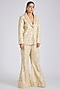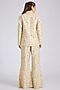 Featuring an ivory blazer in tussar base with floral jaal embroidery. It is paired with embroidered flared pants. Accentuate it with statement jewellery and heels for any festive occasion, sangeet or wedding ceremony.