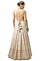 Featuring an ivory lehenga in tussar base with mirror embroidery. It is paired with a halter-neck blouse and an organza embellished dupatta. Accentuate the designer lehenga with emerald jewellery, embellished heels and a potli bag for a bridesmaid look.