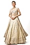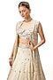 Featuring an ivory lehenga in tussar base with mirror hand embroidery. It is paired with an embroidered blouse and an embroidered jacket. Accentuate it with emerald jewellery and embellished heels for a wedding, sangeet or engagement ceremony.
