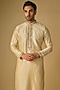 Featuring an ivory kurta in tussar silk base with marodi and gota embroidery. It is paired with cotton silk pants. Style it with pair of kolhapuri sandals for a festive occasion, cultural event, wedding, engagement or sangeet ceremony.