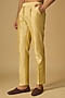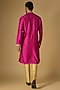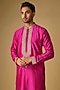 Featuring a rani pink kurta in tussar silk base with marodi and gota embroidery. It is paired with gold beige cotton silk pants. Style it with pair of kolhapuris and a bracelet for a festive occasion or sangeet ceremony.