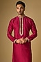 Red Tussar Silk Marodi Embroidered Kurta Set
