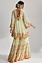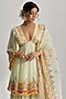Featuring a mint peplum kurta in georgette base with hand and machine embroidery. It is paired with sharara pants and an organza dupatta. Perfect wear for a wedding or engagement ceremony.