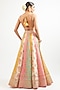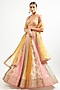 Featuring a multi-colored lehenga in cotton silk base with floral print, gota, dori hand and machine embroidery. It is paired with a blouse and a net dupatta. Accentuate it with minimal jewellery and heels for a wedding, sangeet or engagement ceremony.