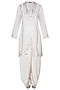 Featuring an off white kurta in chanderi base with cut work embroidery. It is paired with matching dhoti pants and dupatta in chiffon base.