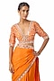 Featuring an orange saree in chiffon base with embroidery. It is paired with a tussar blouse having sequins embroidery. Accentuate it with zircon jewellery and heels for a wedding or sangeet ceremony.