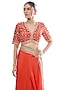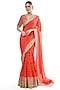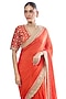 Featuring an orange saree in chiffon base with zari work. It is paired with an embroidered tussar blouse. Accentuate it with statement chandbali earrings and an embellished heels for a refined ensemble, ideal for weddings or sangeet ceremonies.