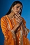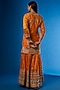Featuring an orange kurta in tussar silk base with gota and thread embroidery. It is paired with matching sharara pants and an organza dupatta.
