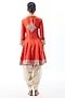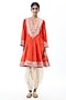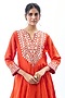 Featuring an orange A-line kurta in georgette base with embroidery. It is paired with cotton dhoti-style pants. Pair it with jewellery and heels for a glamorous appeal, Perfect for wedding ceremony or festive occasions.