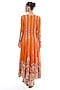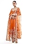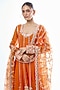 Featuring an orange anarkali in georgette base with mirror embroidery. It is paired with tussar palazzo pants and an organza mirror work dupatta. Accentuate it with statement chandbali earrings and an embellished juttis for a refined ensemble, ideal for pre-wedding or festive occasions.