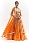 Orange Organza Embroidered Jacket Lehenga Set