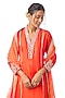 Featuring an orange kurta in tussar base with embroidery. It is paired with linen satin palazzo pants and a leheriya dupatta. Accentuate it with dangler earrings and heels for a festive occasion or sangeet ceremony.