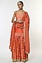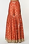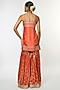 Featuring an orange sleeveless kurta in tussar base with motif embroidery. It is paired with sharara pants having intricate woven pattern and a sheer organza dupatta. Style this anarkali with chandbali earrings, juttis and a clutch for weddings, festive celebrations, and traditional family gatherings.