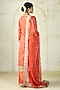 Featuring an orange straight kurta in tussar base with embroidery. It is paired with linen satin palazzo pants and a sheer organza dupatta. Style it with polki earrings, block heels and an embellished clutch, perfect for diwali celebrations, wedding or engagement ceremonies.