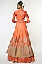 Orange Tussar & Organza Embroidered Jacket Lehenga Set