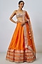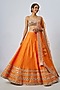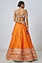 Orange Tussar Thread & Mirror Embellished Kalidar Lehenga Set