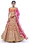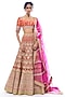 Featuring an orange lehenga in tussar base with thread work. It is paired with a tussar embroidered blouse and an organza dupatta. Accentuate the designer lehenga with kundan polki jewellery and embellished heels for a bridal look, Perfect wear for your wedding, engagement or sangeet ceremony.