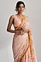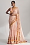 Featuring a pink saree in georgette base with pompom, tassel, hand and machine embroidery. It is paired with a georgette blouse. Style this saree set with dangler earrings and heels for any festive or engagement ceremony.