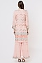 Featuring a pink kurta in organza base. It is paired with matching cotton sharara pants and a chiffon badla dupatta.