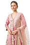 Featuring a pink anarkali in cotton silk base with a deep v-neckline and motif hand embroidery. It is paired with lycra churidar pants and a net sequin embellished dupatta. Accentuate it with statement jewellery and embellished heels for a festive occasion.