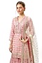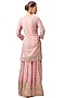 Featuring a pink straight kurta in cotton silk base with print and embroidery. It is paired with printed and embroidered flared sharara pants, including a net embroidered dupatta. Accentuate it with dangler earrings and heels for a festive occasion or sangeet ceremony.