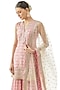 Featuring a pink straight kurta in cotton silk base with embroidery. It is paired with printed sharara pants and a net tikki dupatta. Accentuate with statement jewellery and heels for a sangeet or cocktail ceremony.