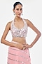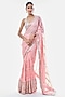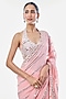 Featuring a pink saree in georgette base with mirror work and floral embroidery. It is paired with a tussar halter neck blouse. Accentuate it with dangler earrings and embellished heels for a festive occasion, sangeet or engagement ceremony.