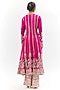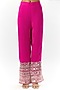 Featuring a pink anarkali in georgette base with mirror work and embroidery. It is paired with tussar wide-legged palazzo pants and an organza dupatta. Accentuate it with statement jewellery and heels for festive occasion or pooja ceremony.