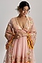 Featuring a pink peplum kurta in georgette base with mirror hand and machine embroidery. It is paired with sharara pants and an organza dupatta. Perfect wear for a wedding or engagement ceremony.