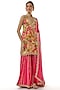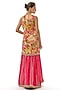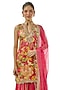 Featuring a pink kurta in chiffon base with mirror and floral print and embroidery. It is paired with lurex sharara pants and a chiffon dupatta having badla embroidery. Accentuate with statement jewellery and juttis for a festive ready look.