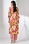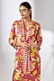 Gopi Vaid features a pink tunic in satin base with floral print and an attached scarf. It is paired with striped pants. Accentuate it with statement earrings and heels for a festive look.