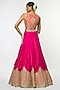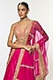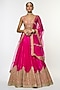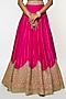 Featuring a pink voluminous lehenga in tussar base with beads embroidery. It is paired with an embroidered blouse and an organza dupatta with ornate border detail detailing. This regal lehenga, richly embellished with intricate embroidery, is an ideal choice for your wedding day or engagement ceremony.