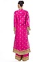 Featuring a pink anarkali in tussar base with motifs and embellishments. It is paired with linen satin palazzo pants and an organza dupatta. Accentuate it with statement chandbali earrings and an embellished juttis for a refined ensemble, ideal for sangeet ceremonies or festive occasions.