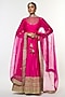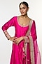 Featuring a pink flared angrakha in tussar base with embroidery. It is paired with linen satin palazzo pants and an organza dupatta having motif embellishments. Style this set with chandbali earrings, juttis and a clutch for weddings, festive celebrations or traditional family gatherings.