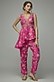 Featuring a pink asymmetric peplum top in tussar base with floral boota and geometric jaal work, including silver foil motifs. It is paired with pants. Accentuate with statement jewellery and heels for a sangeet or cocktail ceremony.