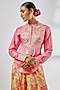Gopi Vaid presents a pink top in tussar base with embellishments. It is paired with floral printed flared pants. Accentuate it with kundan polki earrings and block heels for evening soirees.
