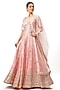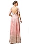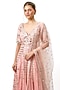 Featuring a pink anarkali in tussar base with a deep v-neckline, three-quarter sleeves and mirror hand embellishments. It is paired with linen satin palazzo pants and a net scalloped embellished dupatta. Accentuate the designer anarkali with polki jewellery, embellished heels and a potli bag for a bridal look.