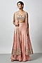 Featuring a pink jacket in tussar base with mirror work. It is paired with a tussar embroidered blouse and flowy palazzo pants. Accentuate it with statement jewellery and heels for a wedding, sangeet or engagement ceremony.