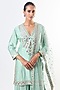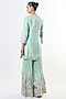 Featuring a powder blue kurta in georgette base with mirror embroidery. It is paired with sharara pants and a net dupatta having scattered sequins embroidery. Accentuate it with kundan or pearl drop earrings and embellished juttis or heels for an elegant look, perfect for festive gatherings, family functions or intimate wedding celebrations.