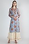 Featuring a powder blue kurta in cotton silk base with print. It has tassels, zardosi and gota embroidery including mulmul underlining.