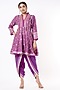 Featuring a purple angrakha kurta in tussar base with print and gota embellishments. It is paired with matching dhoti pants in cotton base.