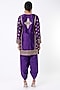 Featuring a purple short kurta in cotton silk base with gota, zari, and sequins embroidery, floral print and frills. It is paired with matching cotton dhoti pants and a pure organza dupatta.