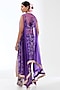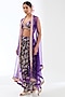Featuring a purple cape in organza base with border detail. It is paired with a tussar blouse and a georgette draped skirt. Accentuate it with statement jewellery and heels for a festive occasion or sangeet ceremony.