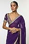 Featuring a purple saree in georgette and tussar base with embroidery. It is paired with an embellished blouse. This regal saree, richly embellished with intricate embroidery, is an ideal choice for your wedding day, sangeet or engagement ceremony.