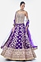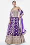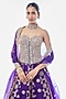 Featuring a purple lehenga in tussar base with embroidery. It is paired with an embellished strapless corset-style blouse and an organza dupatta. Accentuate it with statement jewellery, a low bun and heels for a cocktail, wedding, sangeet or engagement ceremony.